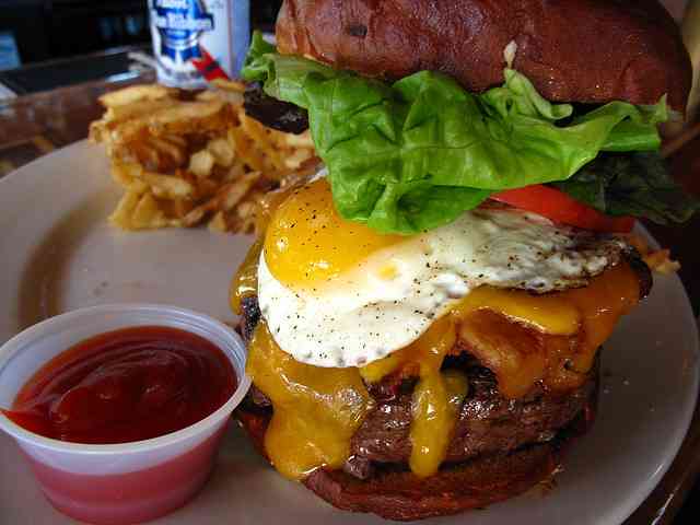 During my stay in Chicago I got to eat at this super cool place with my hubby called Kuma’s Corner, it looked like a punk bar with really loud rock music, famous for burgers… I never had a real good burger beside one time in Miami when I was 13 (my first cheeseburger!) and I was curious to try one here. It was LEGENDARY… big thick meaty burger with onions, mushrooms and avocado. I ate only one part of the bun which was insanely good (pretzel bun!) and I thought I was going to explode. How delicious!!! Here’s a picture of one of their famous burgers