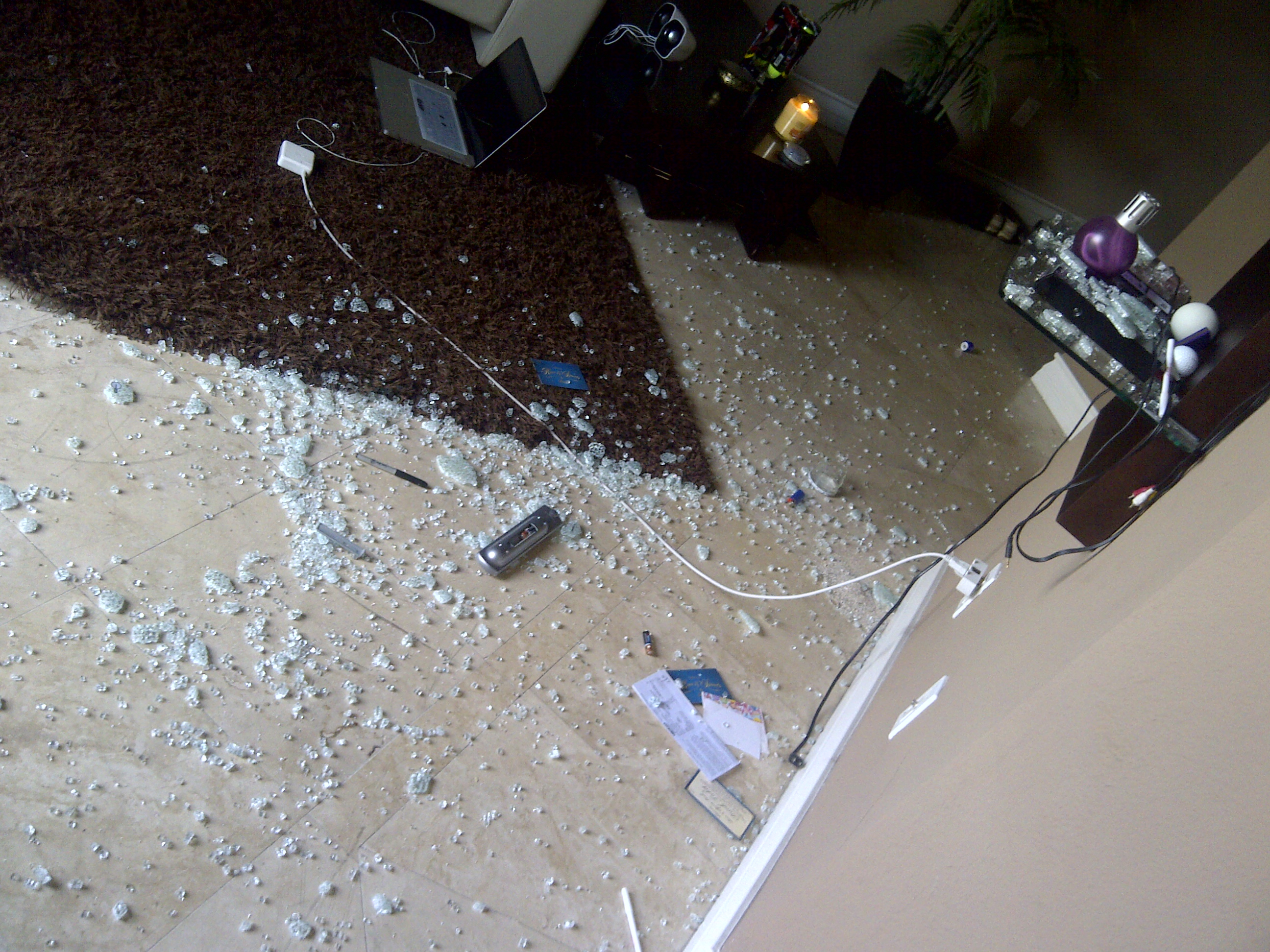 Thank God hubby came home and we disinfected the cuts, put ice on my foot and later on cleaned up the mess. It scared me!