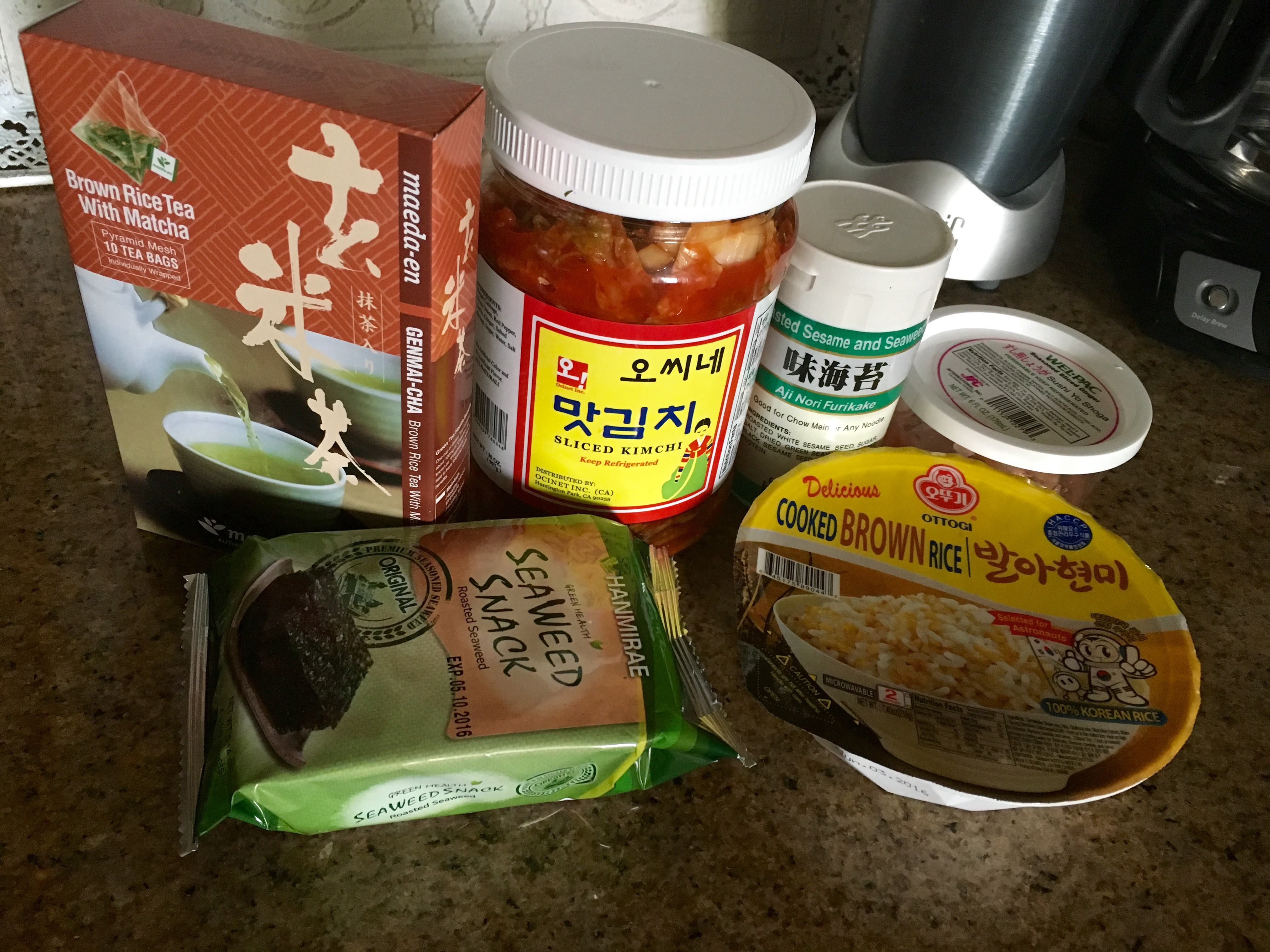 Today I was really craving some Korean food. There is this store in Vegas that my coach showed me, the Greenland Market, every time I go I feel I’m traveling to Korea, half of the stuff they sell it’s not written in English so many times you’re guessing what you’re buying, unless you go with someone Asian lol. I find a lot of healthy choices, my favorite items to buy are pickled ginger, sashimi salmon, brown rice, seaweed, rice seasoning, green tea, kimchi and surprisingly they sell the best HONEY! A cactus honey from Arizona I really love (even though it’s not Korean lol). There are many more things I’m sure I’d like, but so far that’s what I learned to get. I get vegetables sometimes too, especially their chinese eggplants and sweet potatoes, which are reddish outside and white inside. They’re amazing!